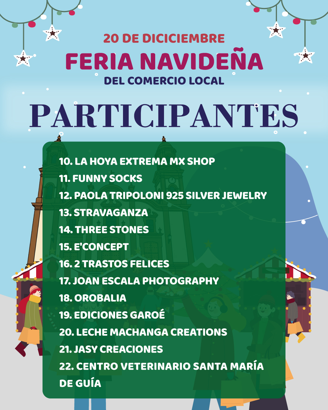 EL 20 DE DICIEMBRE GUÍA TE SORPRENDERÁ FERIA NAVIDEÑA DEL COMERCIO LOCAL Y PASARELA DE MODA PROGRAMACIÓN / ESCALETA 20 DE DICIEMBRE COMERCIOS PARTICIPANTES DE LA FERIA ADEMÁS RECUERDA QUE PUEDES PARTICIPAR EN EL CHEQUE REGALO NAVIDEÑO REGISTRANDO TUS TICKETS DE COMPRA ¡PARTICIPA EN EL CHEQUE REGALO!